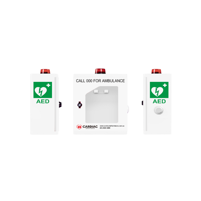 Durable metal lock boxes designed for storing your defibrillator, built to withstand various weather conditions. Accessible via key lock, combination lock, or by calling 000 in emergencies.